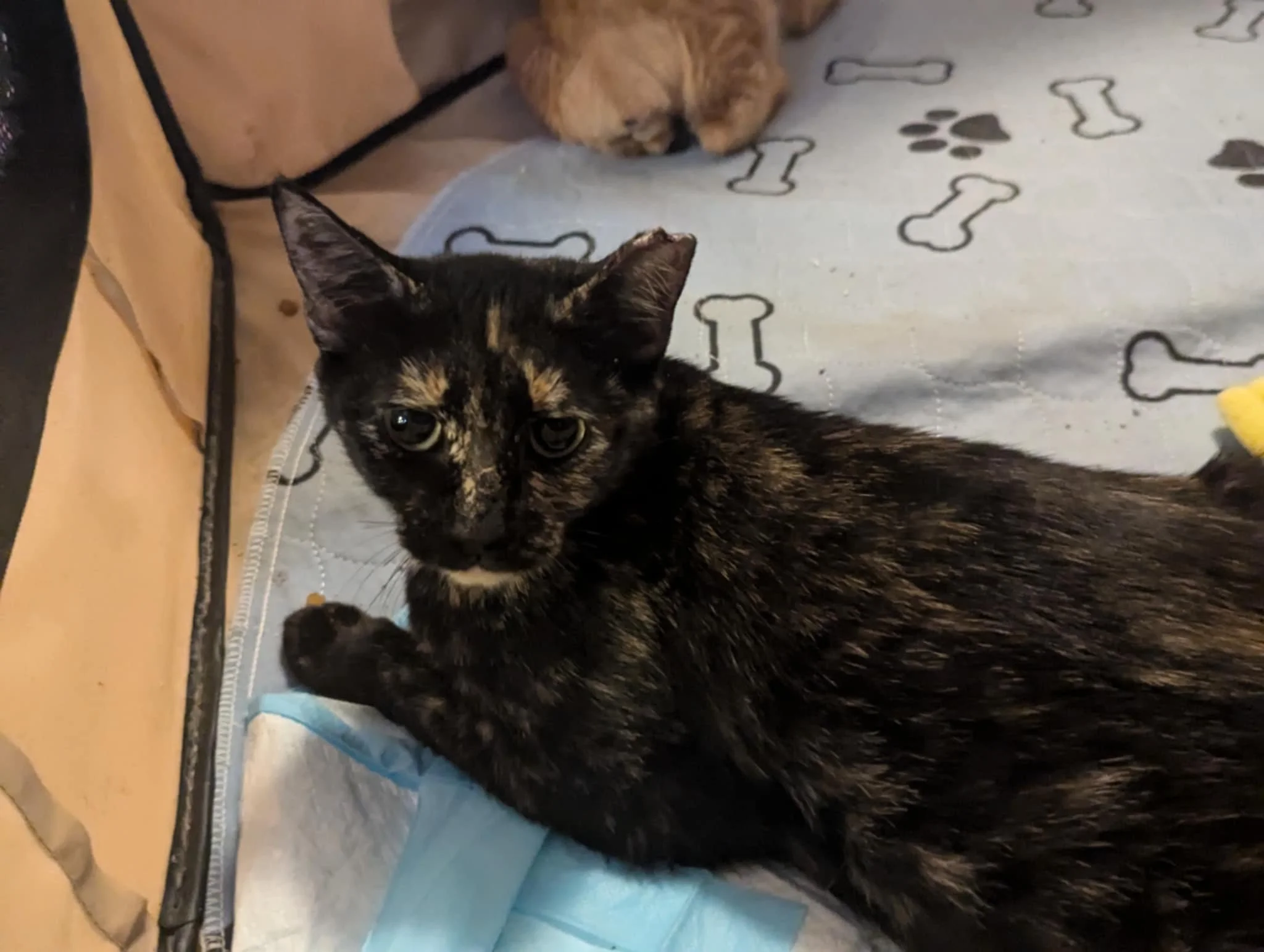 Bastet is one of Christmas Eve Kitty Cleopatra’s kittens that was born in our care. She is sweet and playful and found her forever home with Khufu!